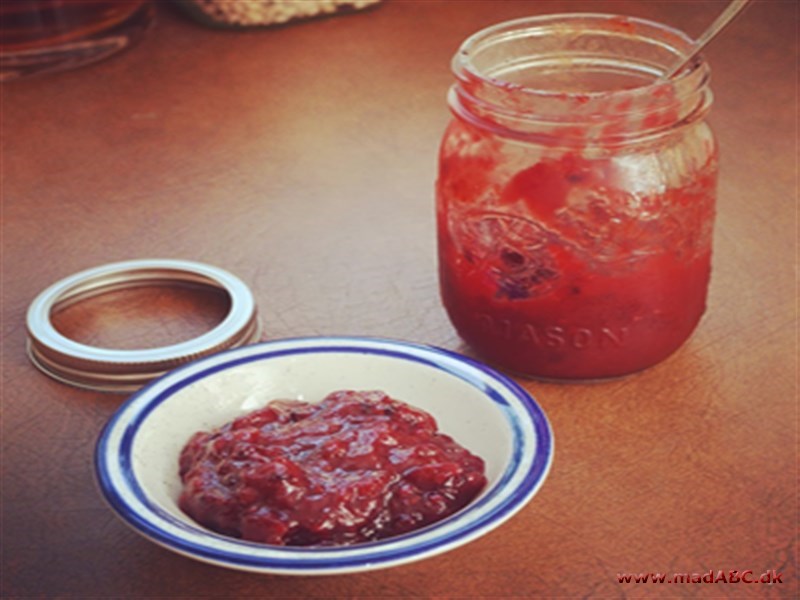 De skyllede abrikoser udblødes i vandet 3-12 timer, males gennem kødmaskinen sammen med de udstenede blommer og koges sagte under låg ca. 30 min. Sukkeret drysses i. Marmeladen koges under omrøring 5-10 min., skummes og tilsættes Atamon. Den hældes i Atamonskyllede glas og lukkes.