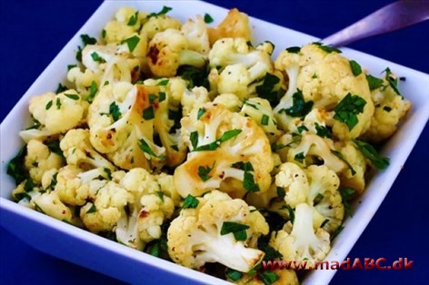 Smelt smørret og kom krydderurterne i, tilsæt blomkålen og vend den forsigtigt rundt i krydderurtersmørret.
