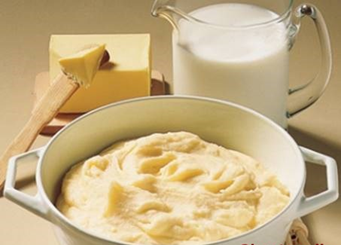 Mos kartoflerne med kartoffelstøder eller elpisker, og tilsæt mælken lidt efter lidt under stadig piskning.
