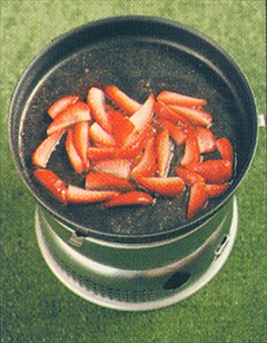 Tilsæt sukker og honning for til sidst at flambere pandekagerne.