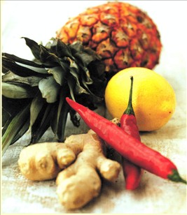 Bland ananas, citronsaft, chili og olie sammen.