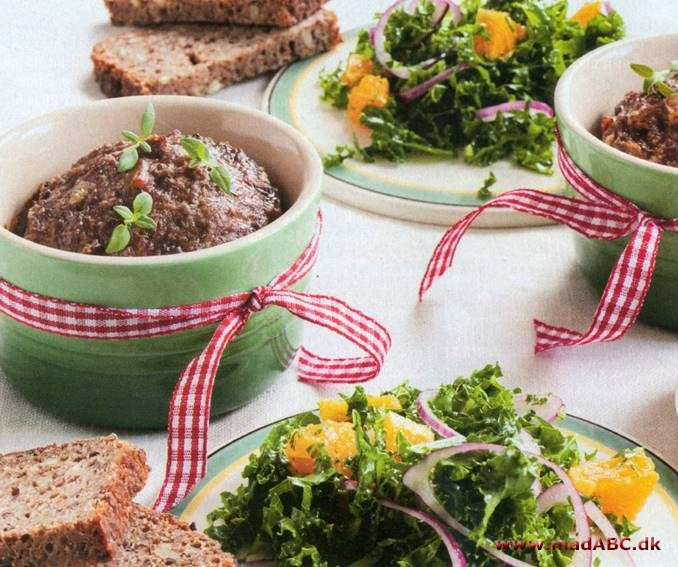 postejerne med grønkålssalat, rugbrød og cornichoner.