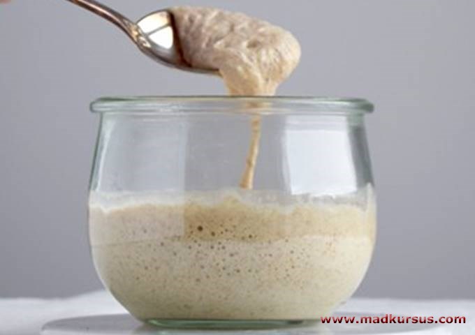 En surdej består af mel og vand. Når mel og vand bliver rørt