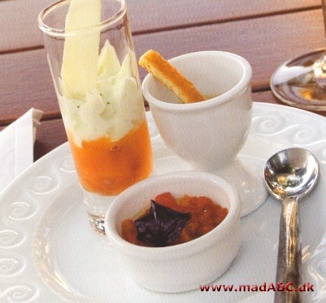 Citrusgele: Lun 50 g appelsinsaft, 50 g rød grapesaft og saft af ½ citron.