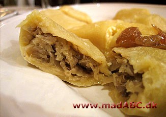 Piroggi stammer oprindeligt fra Ukraine. Traditionelt laves de med kål og kartofler. Altså er denne version forholdsvis autentisk; dog lidt krydret. Prøv det som snacks eller til forret.
