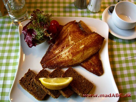 Fisken flås, og steges i smør på en pande.