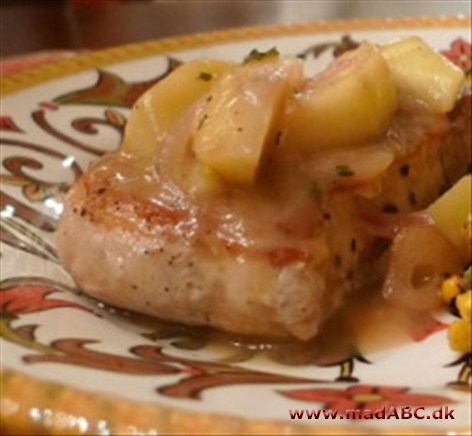 Server koteletterne straks med salat af tyndt skåret julesalat og finklippet purløg.