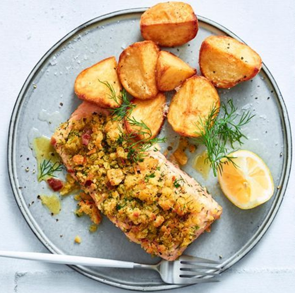 Urtekrydret laks og kartofler i airfryer