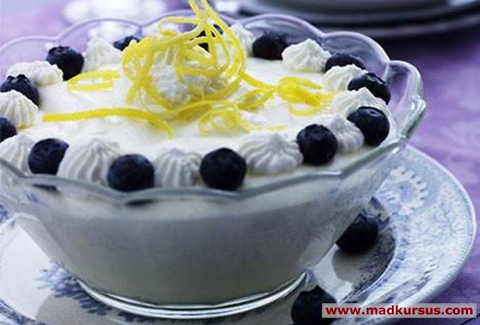 Pynt evt. med citronskal, flødeskum og blåbær.