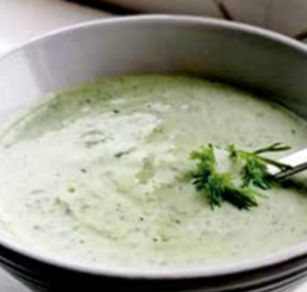 3. Bland resten af cremefraichen og mayonnaisen i den grønne creme.