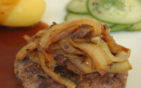 løg, brun sauce og kartofler er en god, gammeldags klassisk ret, som stadig