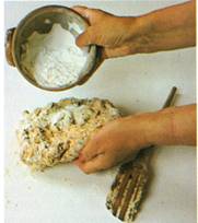 3. Ælt dejen let sammen og form den til et rundt brød.