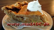 Pien serveres varm med flødeskum.