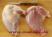 Fasan brysterne skæres fra skroget (skroget bruges til fond) løgene skæres i både.