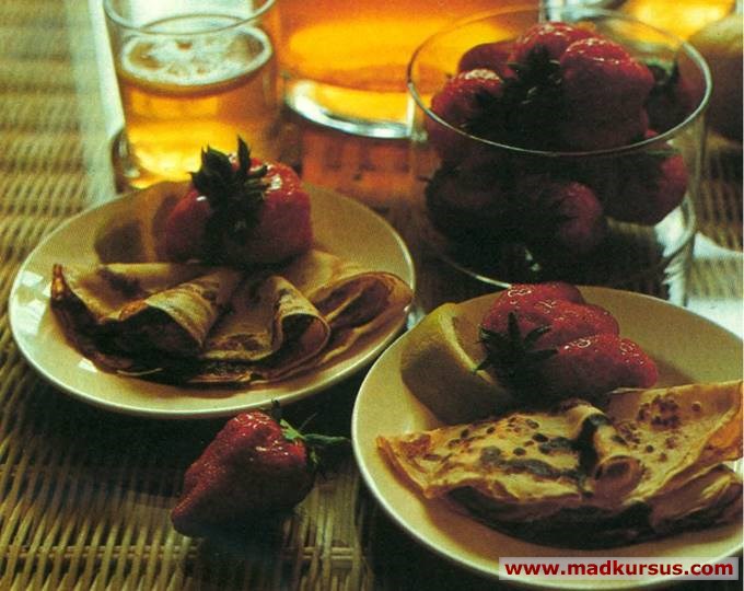 5. Serveres med friske jordbær og evt. en citronsnitte til at dryppe pandekagerne med.