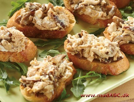 Grill eller rist brødskiverne gyldne og læg dem på et serveringsfad.