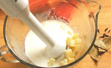 Tilsæt mælk og fløde.
