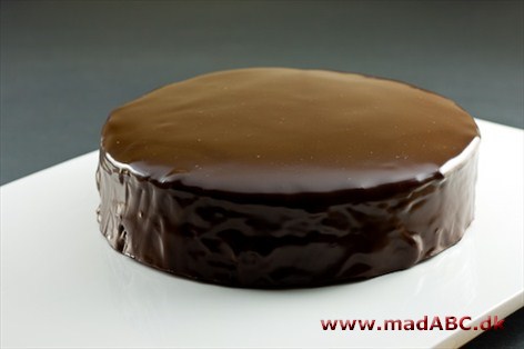 Glasuren kommes på kagen, mens den endnu er varm.