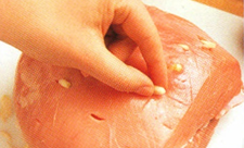 Stik de stiftformede hvidløgsstykker i hullerne.