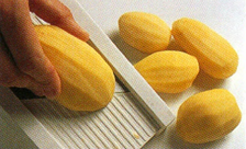 Skiverne bliver lige tykke og kartoflerne bliver dermed færdige samtidig.