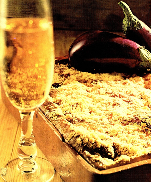 Aubergine kan udskiftes med ristede skiver af courgetter eller