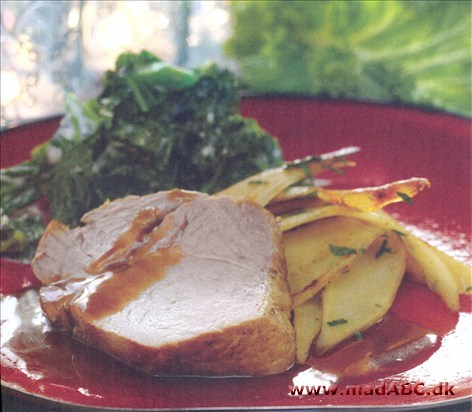 Skær nakkefileten i skiver og server med ølsauce, ristede persillerødder samt letstuvet grønkål.