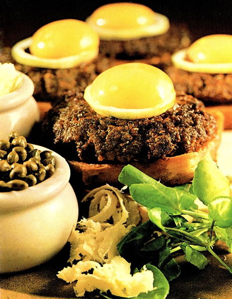 Rist brødet let på den ene side. Ælt kødet med løg, kapers og krydderier.