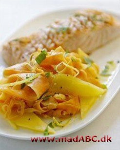 Kom pastaen tilbage i gryden og vend det sammen med gulerodsblandingen og 1,5 dl pastavand.