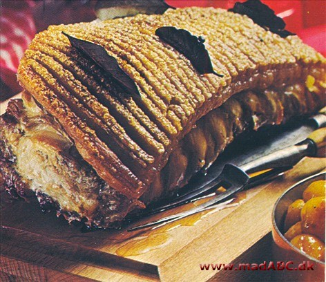 Serve with Danish Red cabbage, Brow­ned potatoes and sweet pickle.