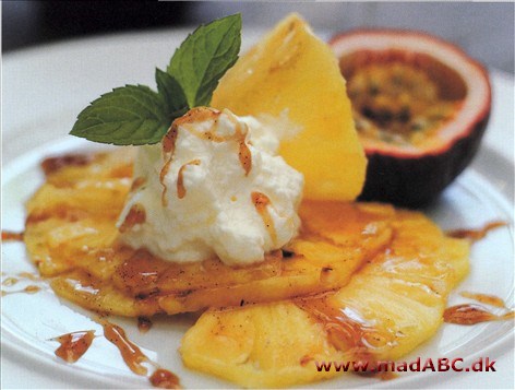 Skræl ananasen, og skær den i så tynde skiver som muligt.