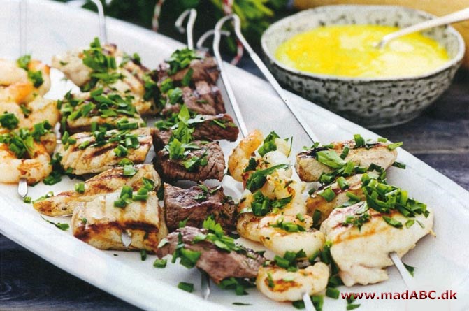 oksekød, fjerkræ og rejer nemt og lækkert. En hjemmerørt aîoli (hvidløgsmayonnaise)