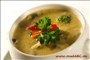 Opskrift på cremet laksesuppe med svampe og rejer. Laksen dampes og tilsættes en velsmagende bouillon af svampe, løg, peber og chili. Serveres med rejer og frisk citronsaft.