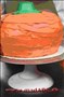 Chokoladekage lagt sammen med appelsinsmørcreme og pyntet som en græskarmand